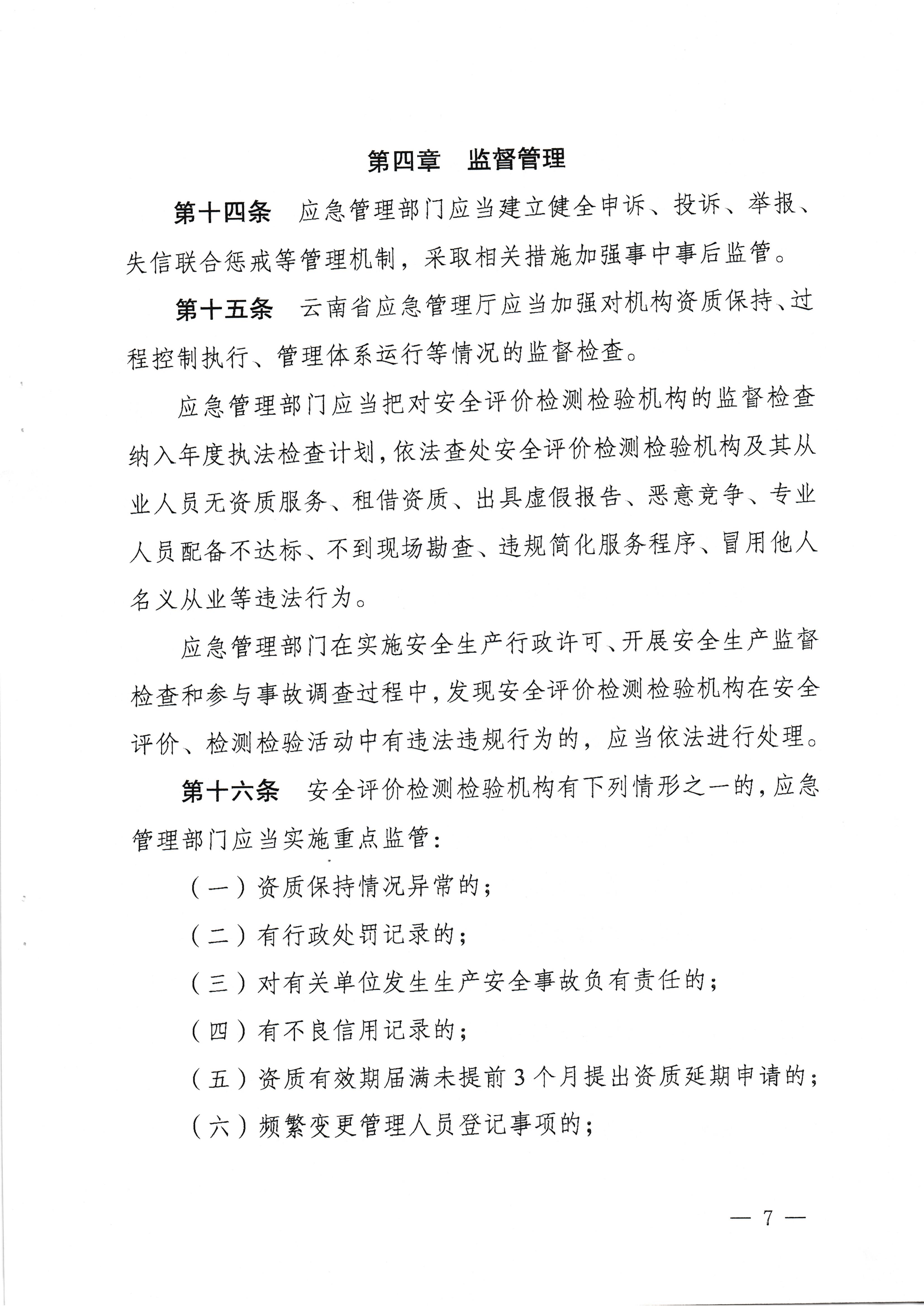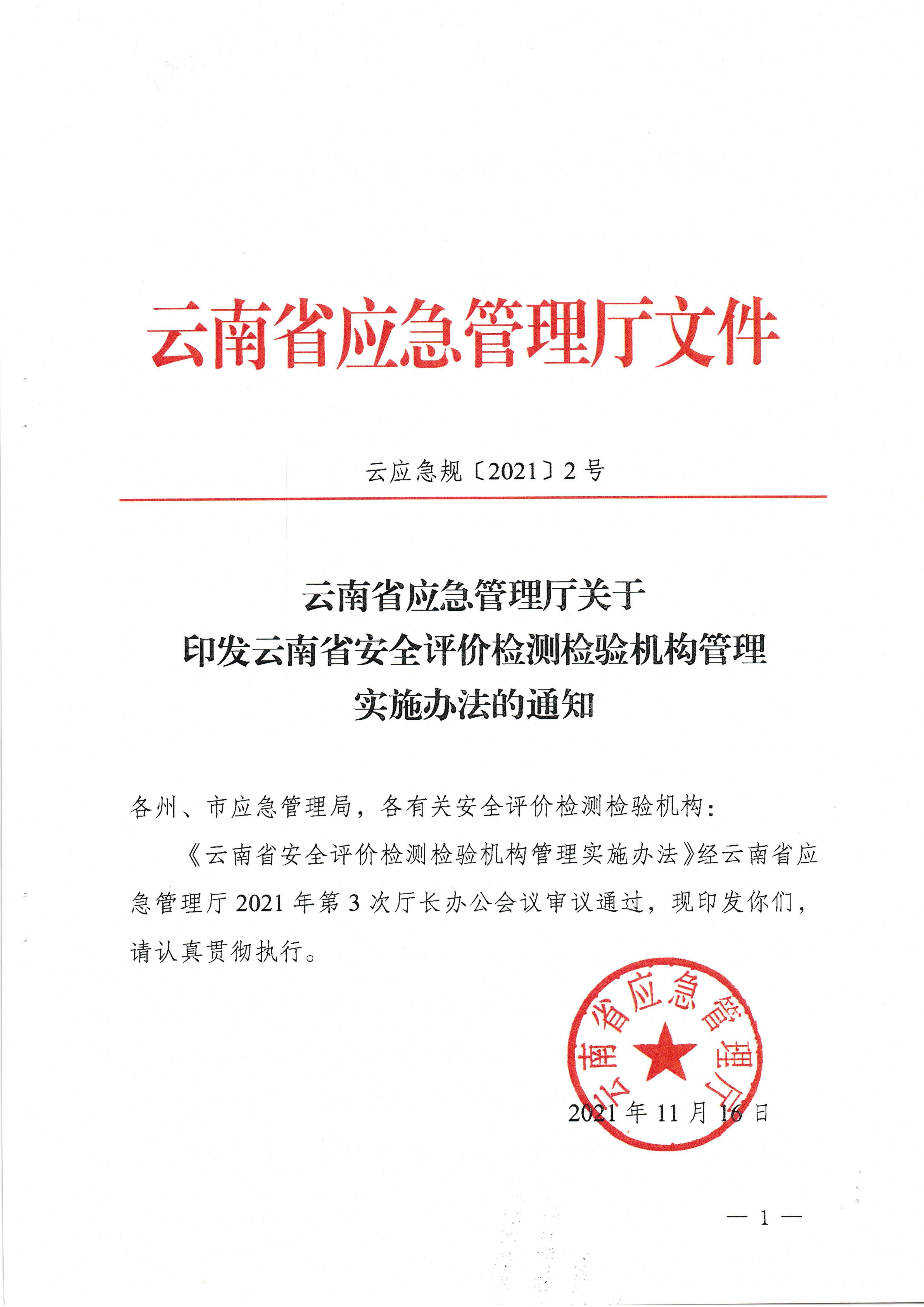 云南省應(yīng)急管理廳關(guān)于印發(fā)云南省安全評價(jià)檢測檢驗(yàn)機(jī)構(gòu)管理實(shí)施辦法的通知